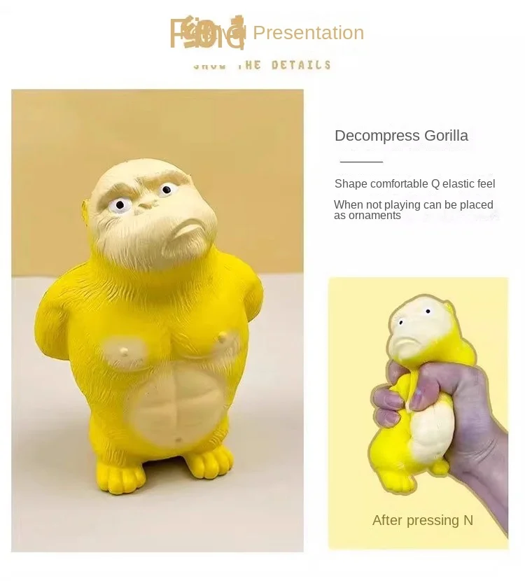 ZSK053 Stress-Relief Squeeze Toy-PU Material Yellow Standing Gorilla for 14+ Years Slow Rebound