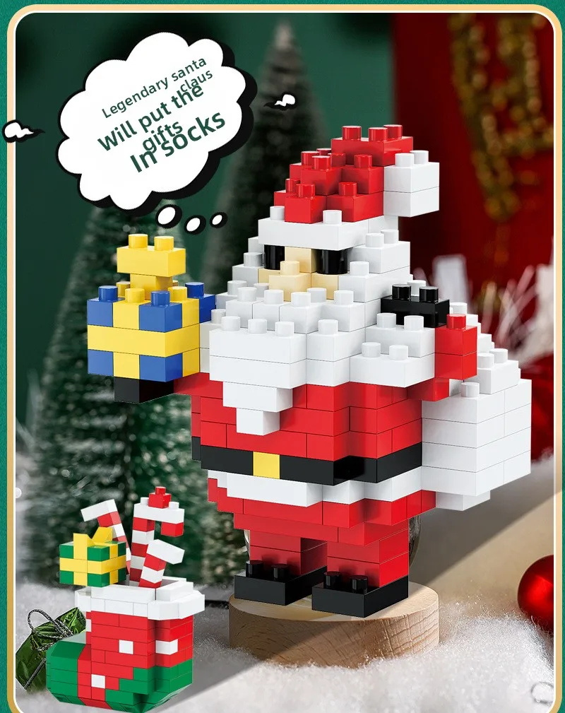 Hot Selling Christmas Cartoon Building Block Sets Mini Action Figure Santa Claus Snowman Stocking Tree for Kids Toys & Gifts