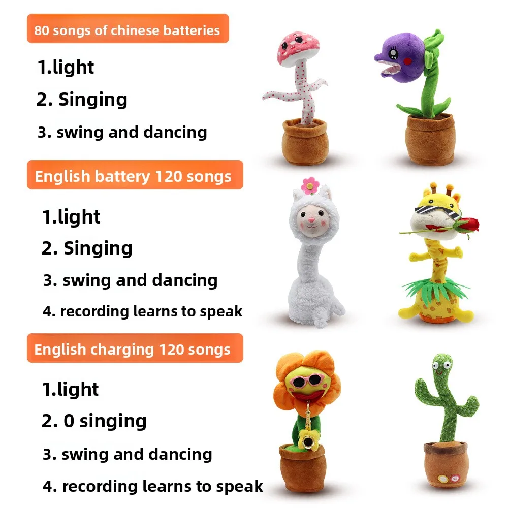 dancing cactus play music singing dancing plush plant baby toys china factory plush toys